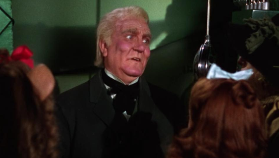 ameaça jogar Totó no rio e usa uma ampulheta para ameaçar Dorothy, o que não se
